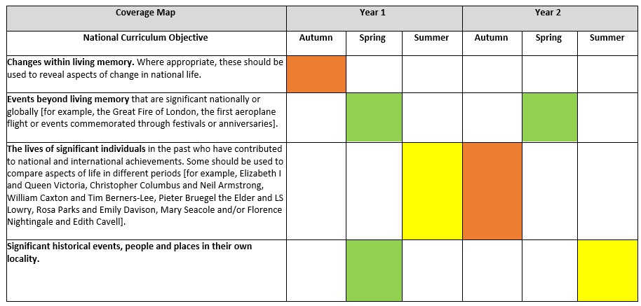 We have a clear progression of skills and knowledge, ensuring that previous knowledge is embedded and built upon throughout their journey through school, allowing children to build up a timeline of events.