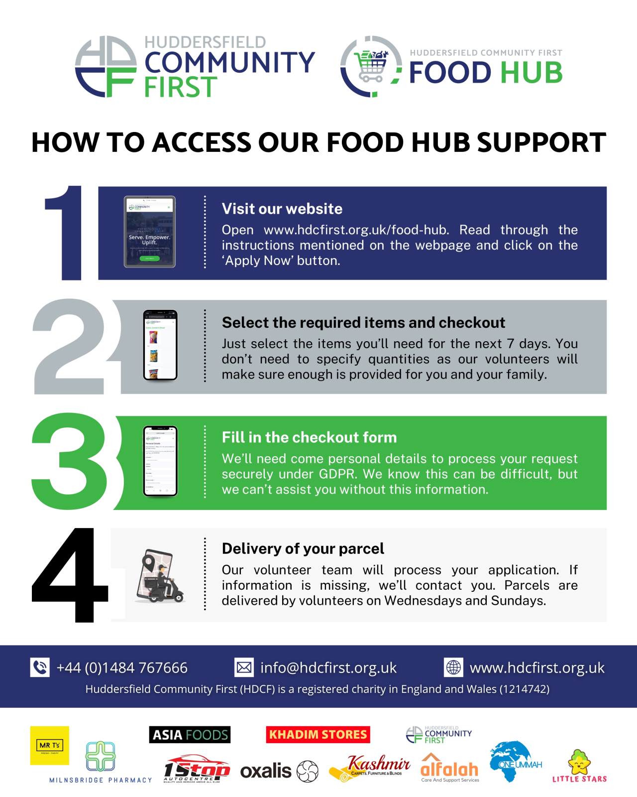 The Huddersfield Community First team have launched a new Food Hub Support Service to assist families across HD postcodes.